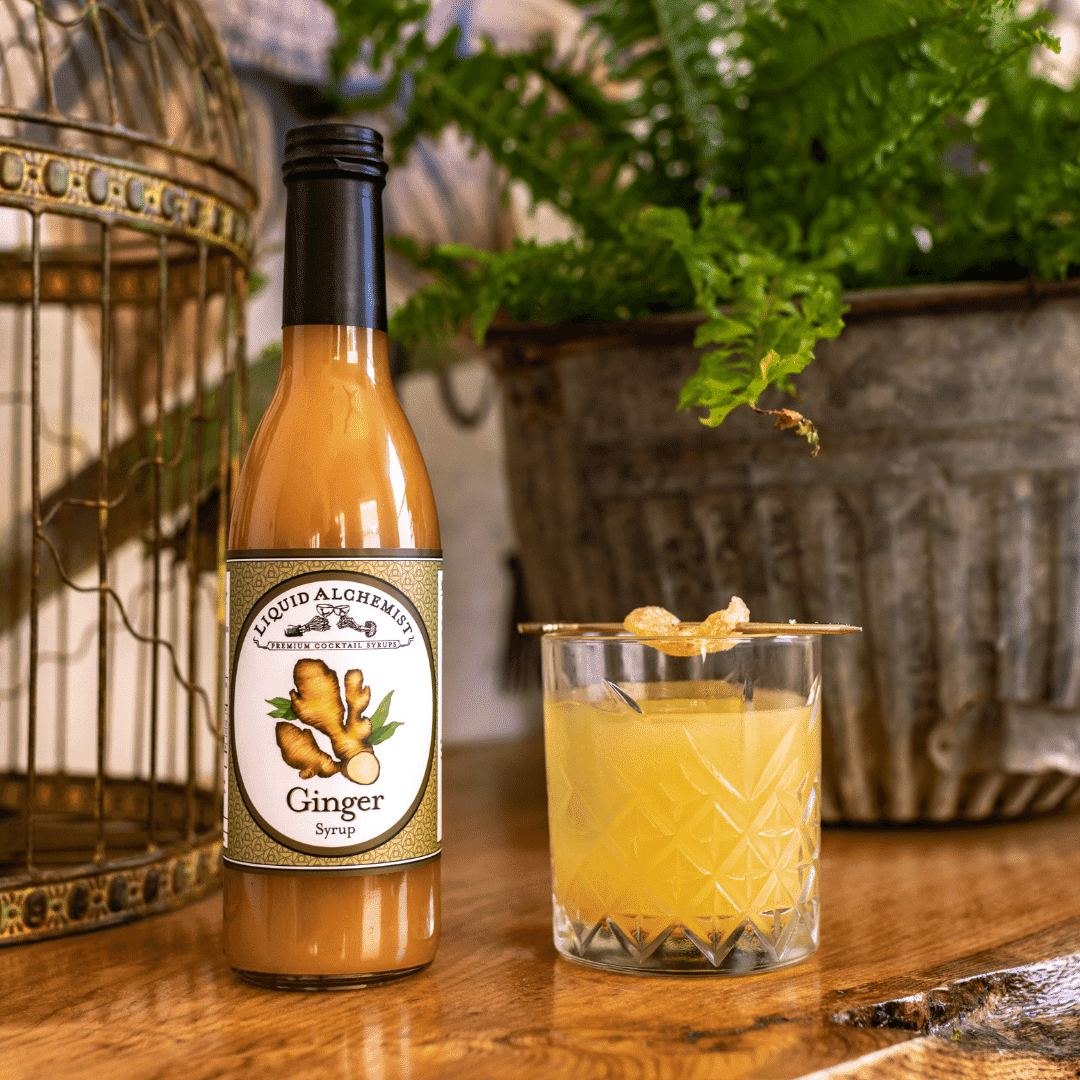 Ginger Cocktail Syrup: a fiery spice of ginger syrup starts with freshly harvested ginger root juiced to capture its flavor. Balanced with the sweetness of cane sugar that brings out the full flavor of this versatile cocktail syrup. Great for spicing up hot or cold cocktails, full pallet mocktails, or topping with some club soda to make a quick ginger beer.