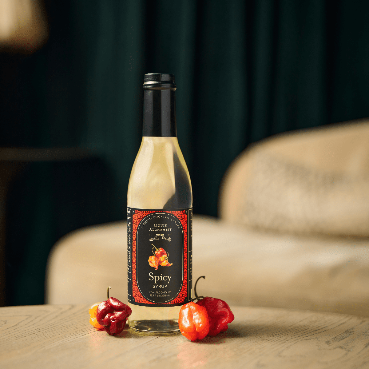 Turn up the heat with Liquid Alchemist Spicy Cocktail Syrup, a premium, non-alcoholic craft cocktail syrup made with natural ingredients, real cane sugar, and a real habanero pepper blend. Preferred and recommended by bartenders and mixologists, this clear syrup mixes invisibly into any cocktail, adding bold, spicy flavor without altering color.