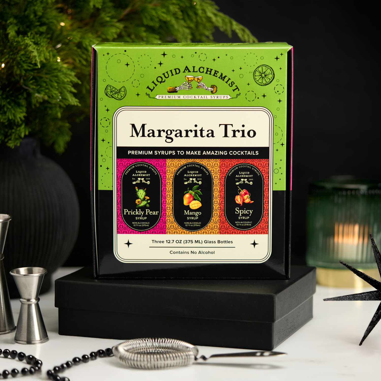Shake up the perfect margarita—no bar tools or mixology skills required. Our Liquid Alchemist Margarita Cocktail Syrup Pack features three of our most-loved flavors—Mango, Spicy, and Prickly Pear—crafted to deliver bold, balanced, and refreshing cocktails every time.