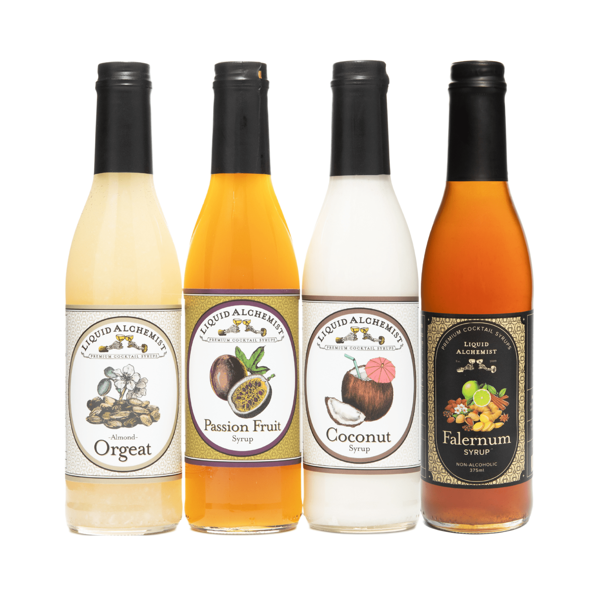 Elevate your tropical drink game with our Tiki Cocktail Syrup Set. Crafted by Liquid Alchemist, this set includes three 375ml bottles, each containing a unique flavor profile designed to transport you to a tiki paradise. The set comprises exotic Coconut Syrup, delectable Almond Orgeat Syrup, vibrant Passion Fruit Syrup, and our newest addition Falernum Syrup.